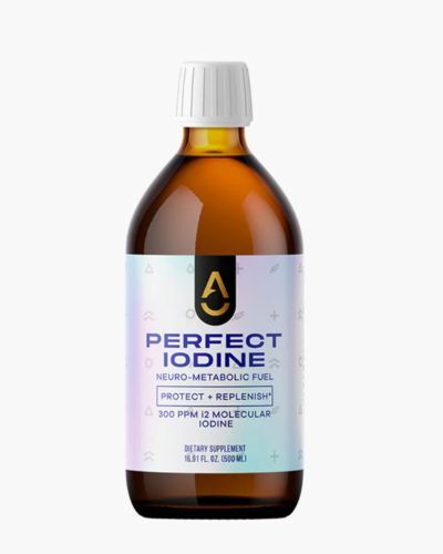 Perfect Iodine, with a higher concentration of 300ppm in a larger bottle, delivers 60mcg per spray for a convenient and potent iodine supplement.