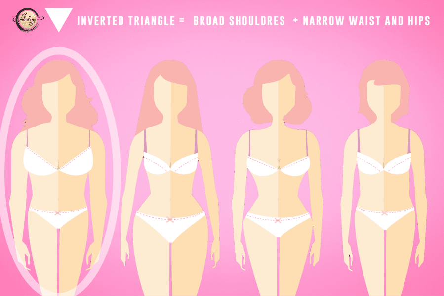In this article, I am going to focus on the inverted triangle body type. If you are an inverted triangle, your shoulders will be set wider than your hips and more often than not, there will be little curve to the waist. If this sounds like you, keep reading!