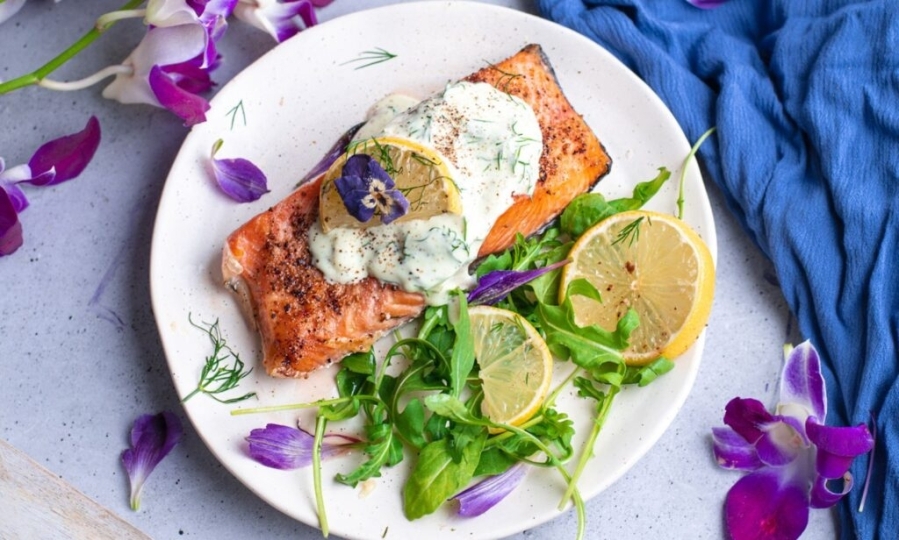 This Creamy Dill Salmon offers omega-3–rich salmon for heart and brain health, while dill provides antioxidants and anti-inflammatory compounds. A light mayo-dill sauce adds healthy fats and bright flavor without heavy calories, making this a nutrient-dense, protein-packed meal.
