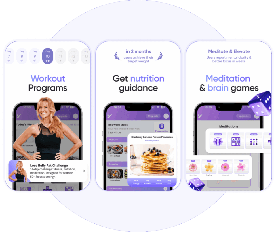 Brain fog is real. To help women stay sharp, I’ve included brain training exercises in the app. These workouts combine movement with memory recall, like throwing a ball while naming words from A to Z. It challenges your mind and body at once.