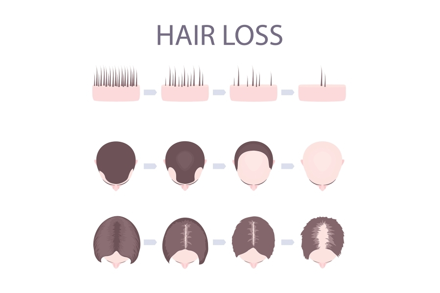 In women, hair loss is experienced as a thinning of the hair around the scalp, unlike men who experience baldness as a receding of the hair line. In any case, hair loss is a sign of unbalance or irregularity in the body.