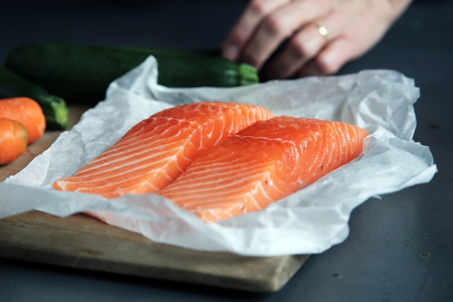 - Salmon: Salmon (and other fatty fish such as mackerel) are full of both omega 3 and omega 6 fatty acids which are needed for healthy hair. Studies have shown that these fatty acids included in a healthy diet reduce hair loss in women and increase hair density.