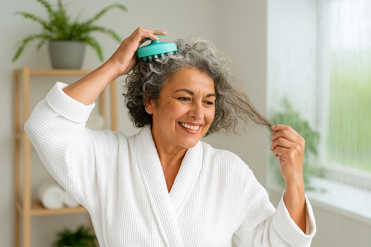 Learn my secret tips that I use to keep my hair healthy, strong, shiny and long over 50! Anyone can use these tips to make your hair grow fast- regardless of its condition. As women age, conditions like hair loss, female-pattern baldness, dry hair and brittle hair are extremely common. There are SO many things that cause our hair to become unhealthy as we age… Stress, irregular hormones, medication . . . the list could go on.