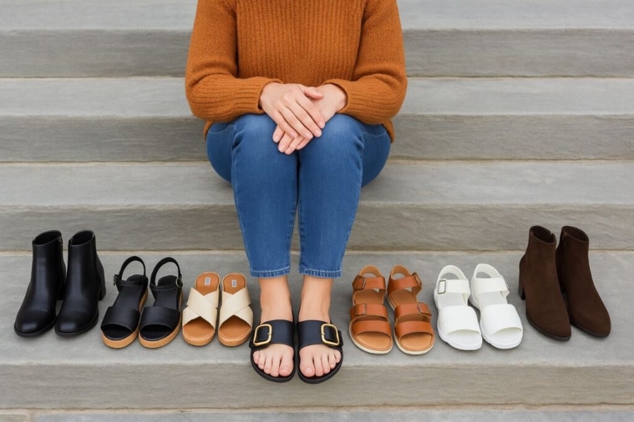Keep three categories in your weekly rotation: fitness walking shoes, smart-casual loafers, and dress-appropriate heels under 1½ inches. You can also keep your shoes in good shape by putting cedar inserts inside them.