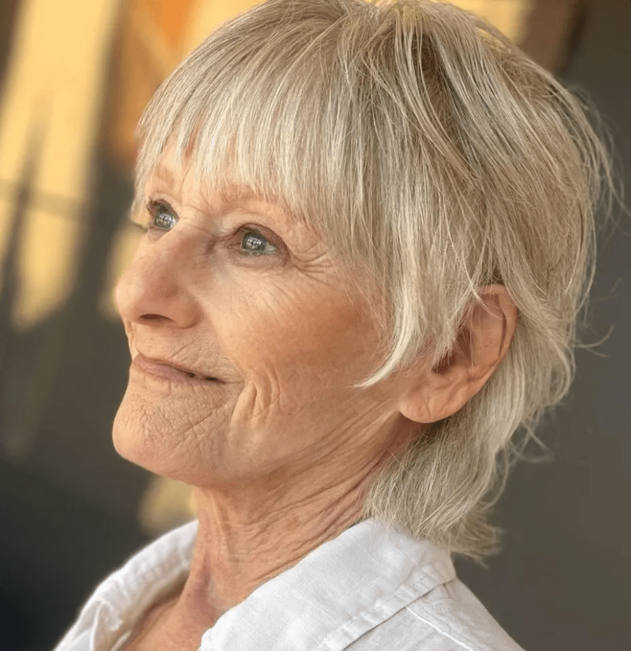 A short haircut with layers and bangs could be the best way to add style and volume to your thinning areas, making it one of the most flattering haircuts for fine thinning hair over 50. This type of cut adds shape, bounce, and the illusion of fullness, making it a go-to choice for women who want a youthful and modern look.