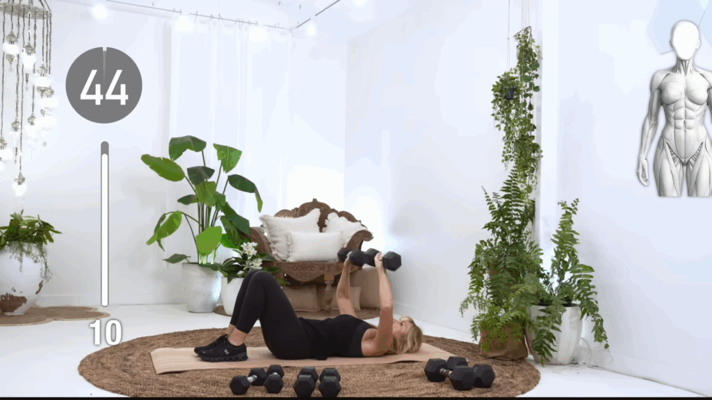 The chest press is the grand finale of your push workout. Lying on your back, press the dumbbells upward, exhaling as you lift. This exercise engages both the chest and triceps, leaving you with a powerful sense of completion.